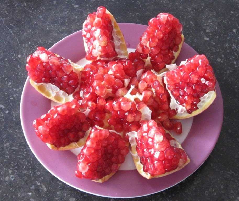 Если вы все шаги сделали правильно, рубиновые зернышки с легкостью выпадут из кожуры в тарелку.