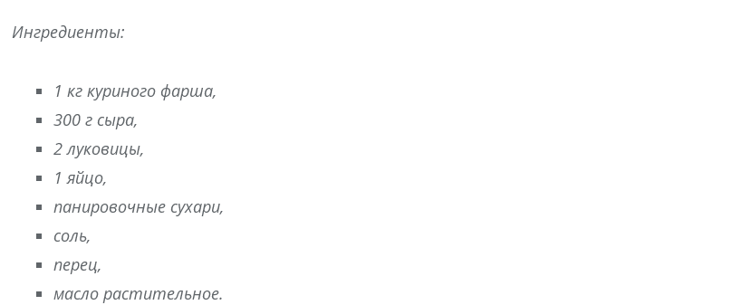 Самые сочные котлеты получаются из куриной грудки. Такой продукт богатый белком и в нем практически отсутствует жир. Курятина сама по себе очень постная, поэтому ее фарш комбинируют со свиным или внутрь котлеты кладут твердый сыр.