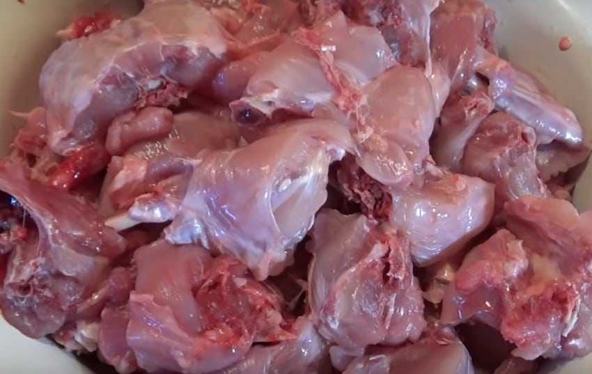 - Промываем мясо. При желании можно отделить тушку от кости. Но это делать не стоит, так как в процессе кость выделяет желирующее вещество. В результате продукт получится сочным и невероятно вкусным.