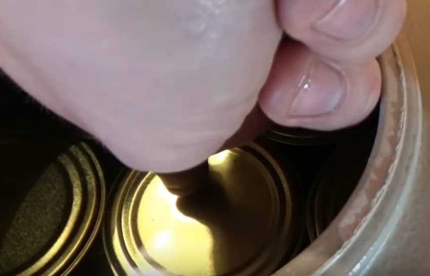 - Выключаем плиту, даем автоклаву остыть, спускаем воздух, открываем крышку, вынимаем банки с готовой консервацией.