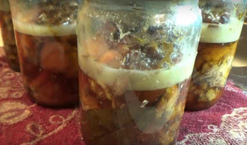 - Прикрыть банки крышками и простерилизовать в течение четверти часа в кастрюле с водой, после чего основательно закрутить крышки.