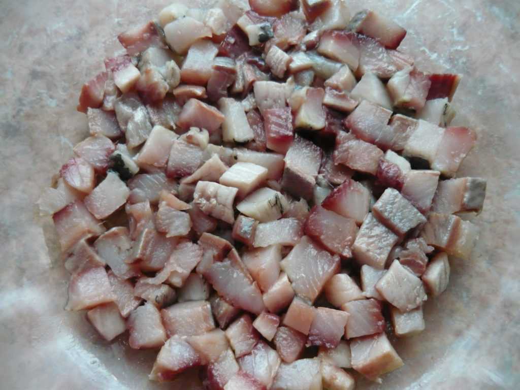 Промойте филе, нарежьте его кубиками, и вуаля – всё готово! Можно начать готовить «шубу».