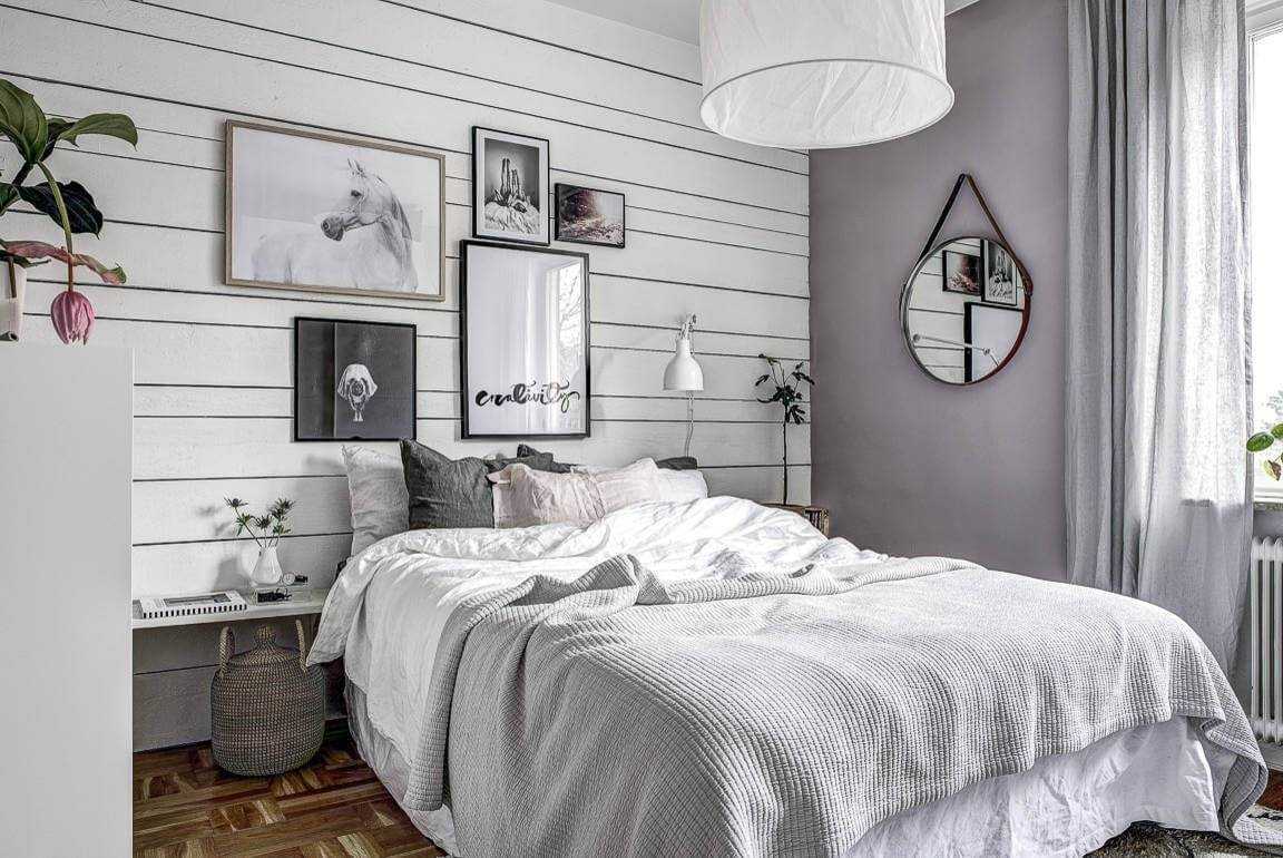 Скандинавский дизайн – хороший выбор для спален, которые залиты солнечным светом. Для создания такого дизайна применяют белый, серый, голубой оттенки. В приоритете холодные тона. Такая цветовая палитра придает интерьеру легкость и прохладу, вызывает ассоциации со свежим горным воздухом.