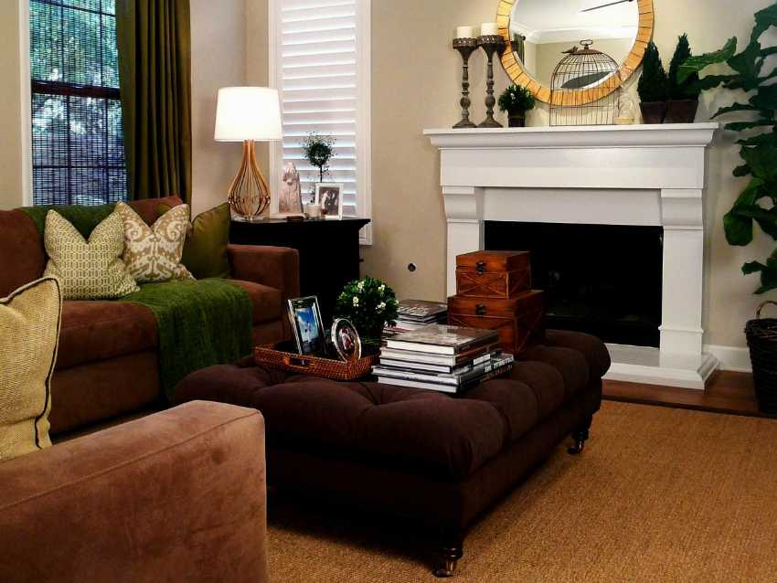 Придать гостиной уюта поможет камин. Конечно, такой элемент декора стоит очень дорого, да и не каждый решится поставить у себя в зале эту конструкцию. Но выход есть.