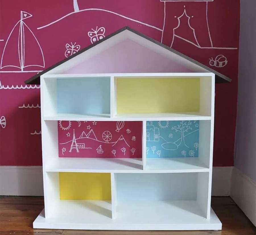 Любой стеллаж, небольшой шкаф или комод можно переделать в кукольный домик. Это может быть старая и уже ненужная мебель либо специально приобретенная для задуманного проекта. Такое решение позволит обойтись без сложных и пыльных производственных этапов, к которым относится распиловка и шлифовка заготовок.