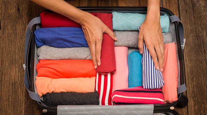 - Чтобы складок и неровностей было минимальное количество, лучше укладывать вещи в сумку или чемодан из жесткого материала.