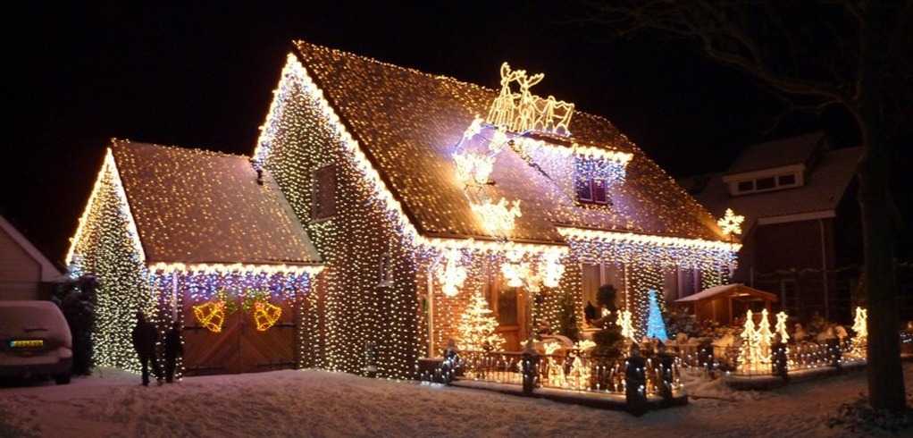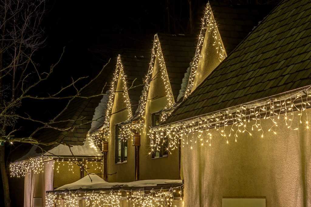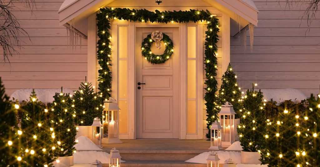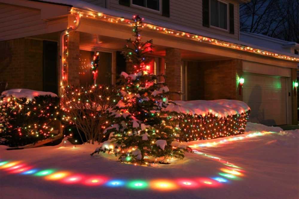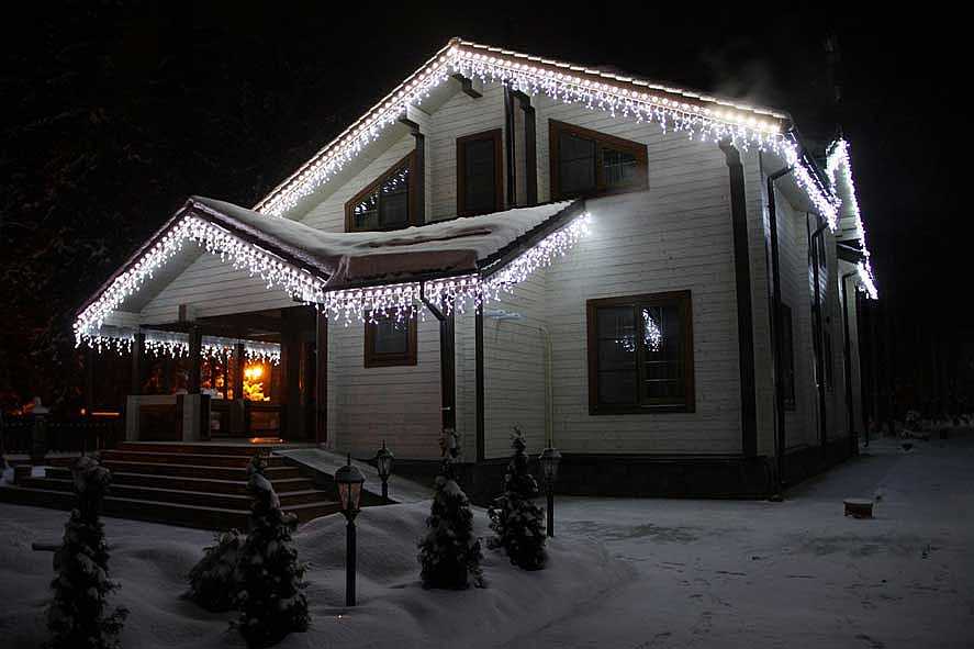 - Елочные гирлянды. Обвесьте крышу вашего дома или окна гирляндами с яркими огоньками. Выберите теплые оттенки, такие как красный, зеленый, золотой или белый.