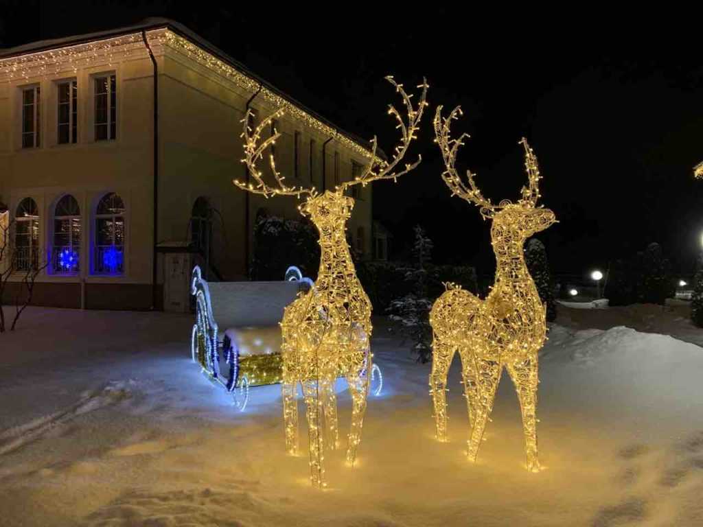 - Снеговики и олени из светящихся гирлянд. Создайте снеговиков и оленей из гирлянд, расположив их на газоне. Это привнесет веселье и детскую радость в ваш декор.
