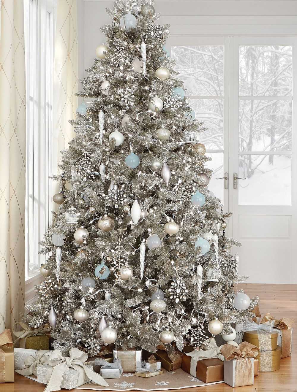 Чтобы нарядить елку на Новый 2025 год, неплохо обратить внимание на серебристые оттенки — в такой гамме самое скромное деревце будет выглядеть как роскошная красавица. Звезда на верхушке не должна выбиваться из общего стиля, а гирлянду нужно выбирать с белыми лампочками