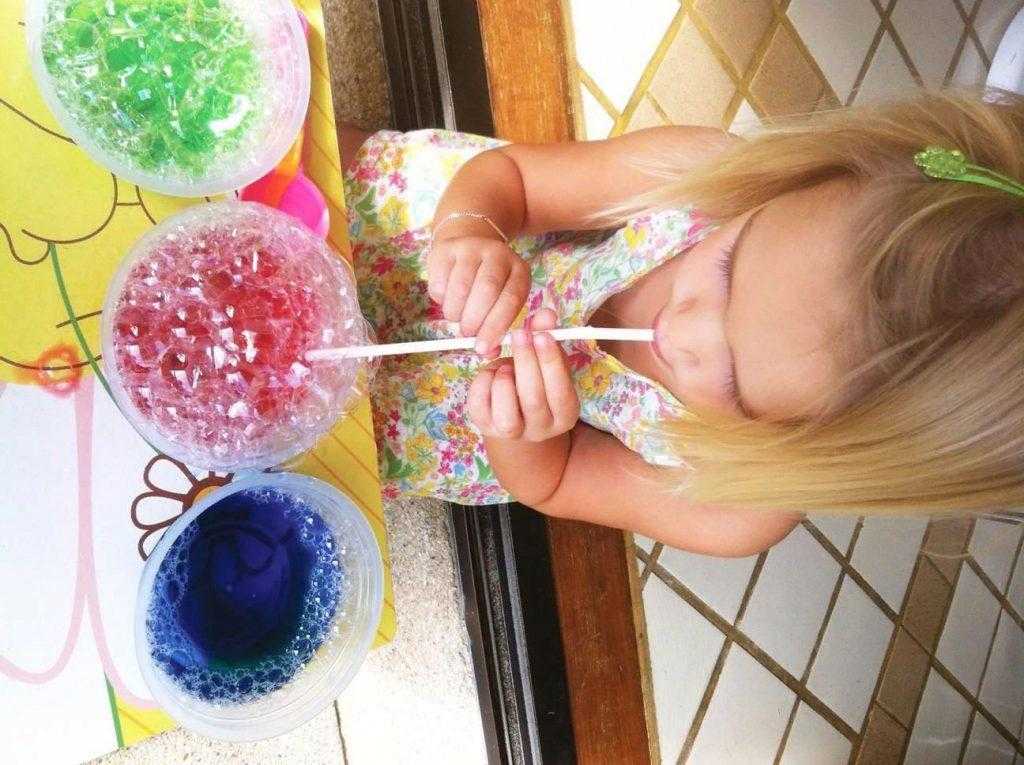 • Добавив в смесь пищевой краситель, вы получите пузыри разных цветов.