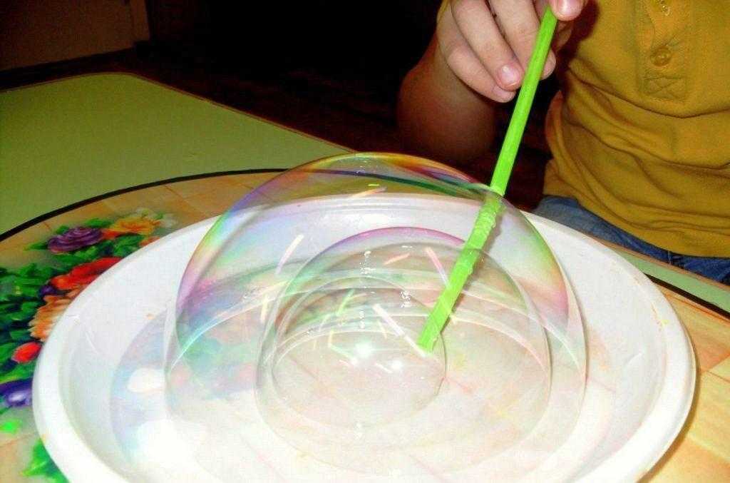 Самодельные пузыри чаще всего надувают с помощью трубочек для коктейля. Из тонких соломинок можно выдуть маленькие пузырьки. Если использовать толстые трубочки, можно устроить соревнования — кто надует самый большой шар. Просто макните соломинку нижним концом в раствор и начните дуть в неё с обратной стороны.