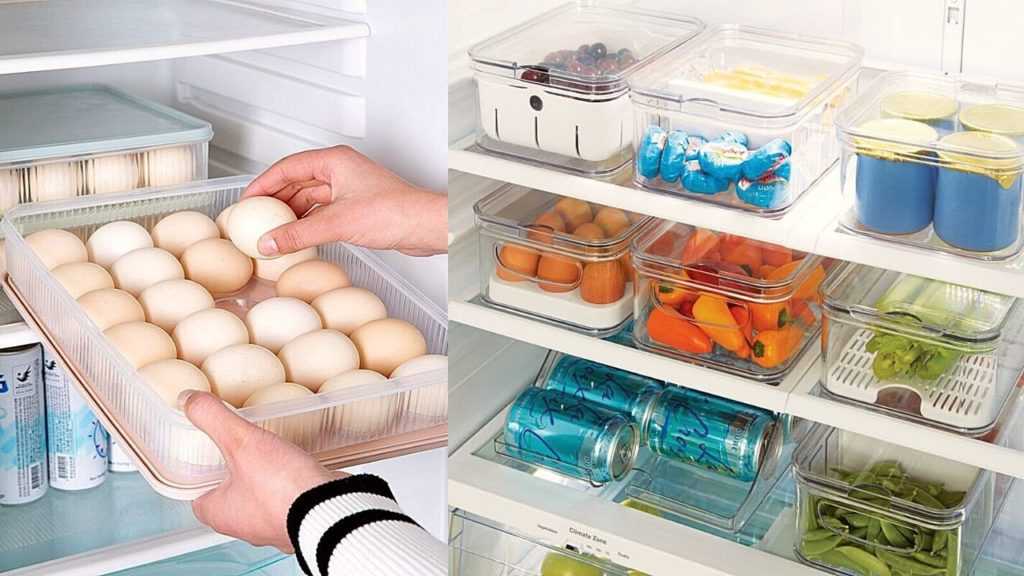 Продукт ставится в специальный лоток, закрывается крышкой – это поможет избежать порчи и протухания. Специальная полка на боковой дверце не годится для хранения яиц – лучше использовать контейнер и помещать его как можно ближе к морозильной камере.