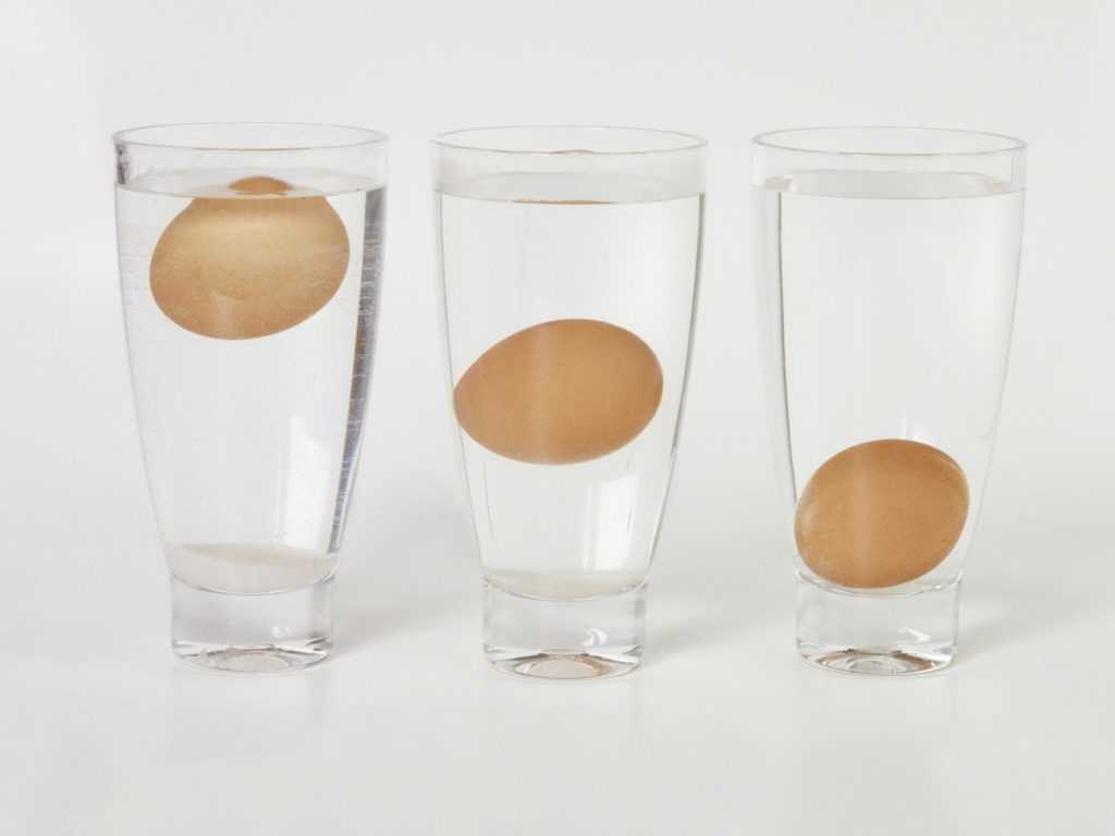 - Положите туда яйцо. Если оно осталось на дне, продукт свежий. Если всплыло, его долго хранили. Причина в том, что в течение времени содержимое высыхает, его вес теряется.