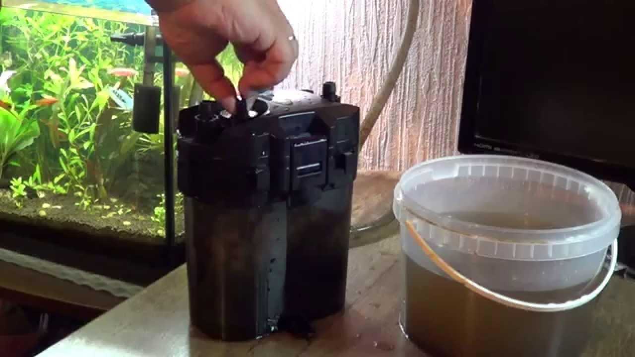Чистку фильтра нельзя совмещать с помывкой декораций и заменой водой. Резкий скачок водного баланса может навредить обитателям аквариума. Фильтр выключается из сети, достается из аквариума и разбирается. По внешнему фильтру аккуратно проходятся зубной щеткой, чтобы не смыть полезные бактерии. При промывании фильтра достается поролоновый вкладыш и промывается под напором проточной воды.