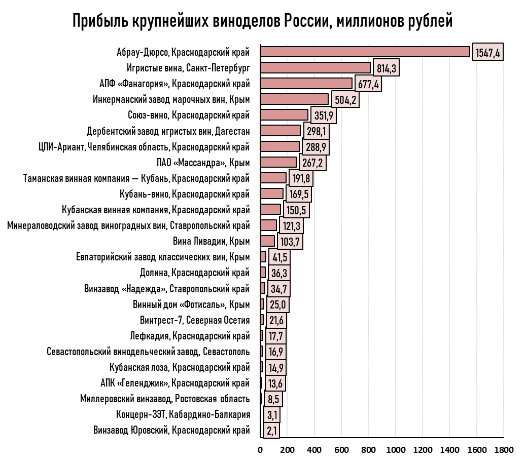 Тем не менее, в России есть свои лидеры отрасли, которые могут неплохо зарабатывать на виноделии. В ИД «ЕвроМедиа» собрали данные о самых прибыльных российских компаниях в отрасли, и получилось примерно так: