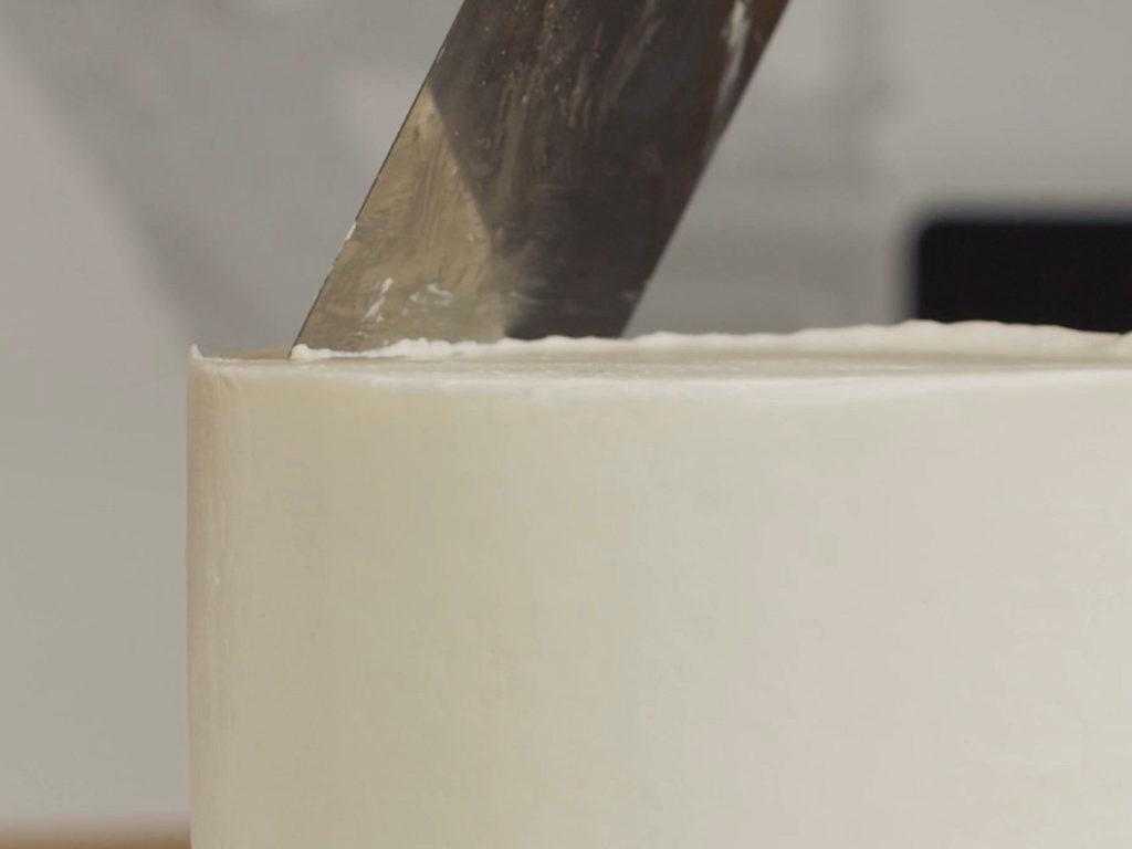 - Шпатель – это очень важный инструмент для выравнивания торта. По большей части, именно от правильно подобранного шпателя зависит выравнивание торта. Подбирайте только металлический шпатель. Шпатель должен быть ровным и иметь угол 90 градусов, с ним будет максимально удобно выравнивать торты. Я рекомендую брать шпатель выше торта на несколько сантиметров, оптимальная высота шпателя около 15 сантиметров. На производстве мы используем «японский шпатель», он продается в обычных строительных магазинах. С ним очень удобно работать и получается идеальное выравнивание.