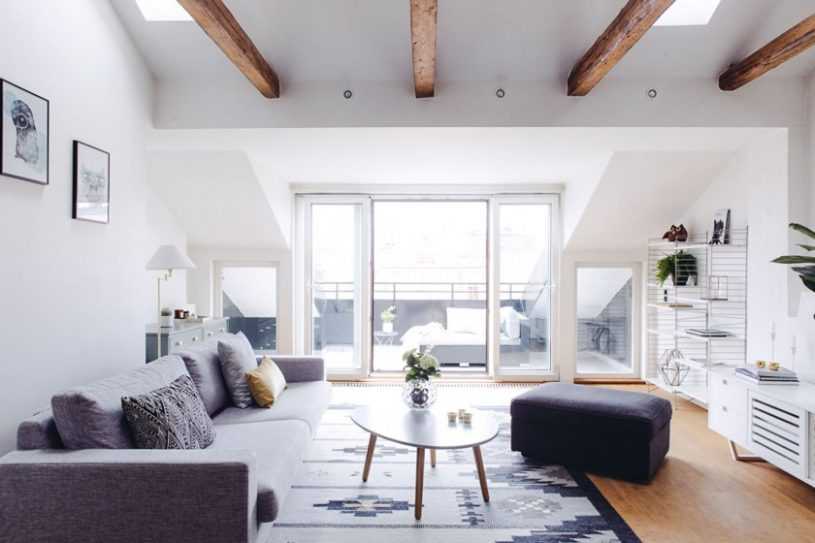 Окна и вовсе старайтесь не закрывать. Если есть возможность – сделайте панорамное окно, оформить его можно римскими или рулонными шторами. А вот тяжелых портьер лучше избегать. На пол можно постелить пушистый ковер, но он должен быть однотонным, без пестрых орнаментов.