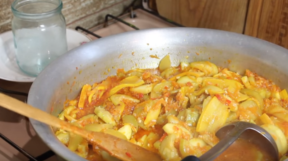 - Влить кислоту, прогреть еще 5 минут. Готовую икру разложить по стерильным банкам, закрыть. Перевернуть, обернув теплым одеялом до полного остывания. Хранить в холодном месте.