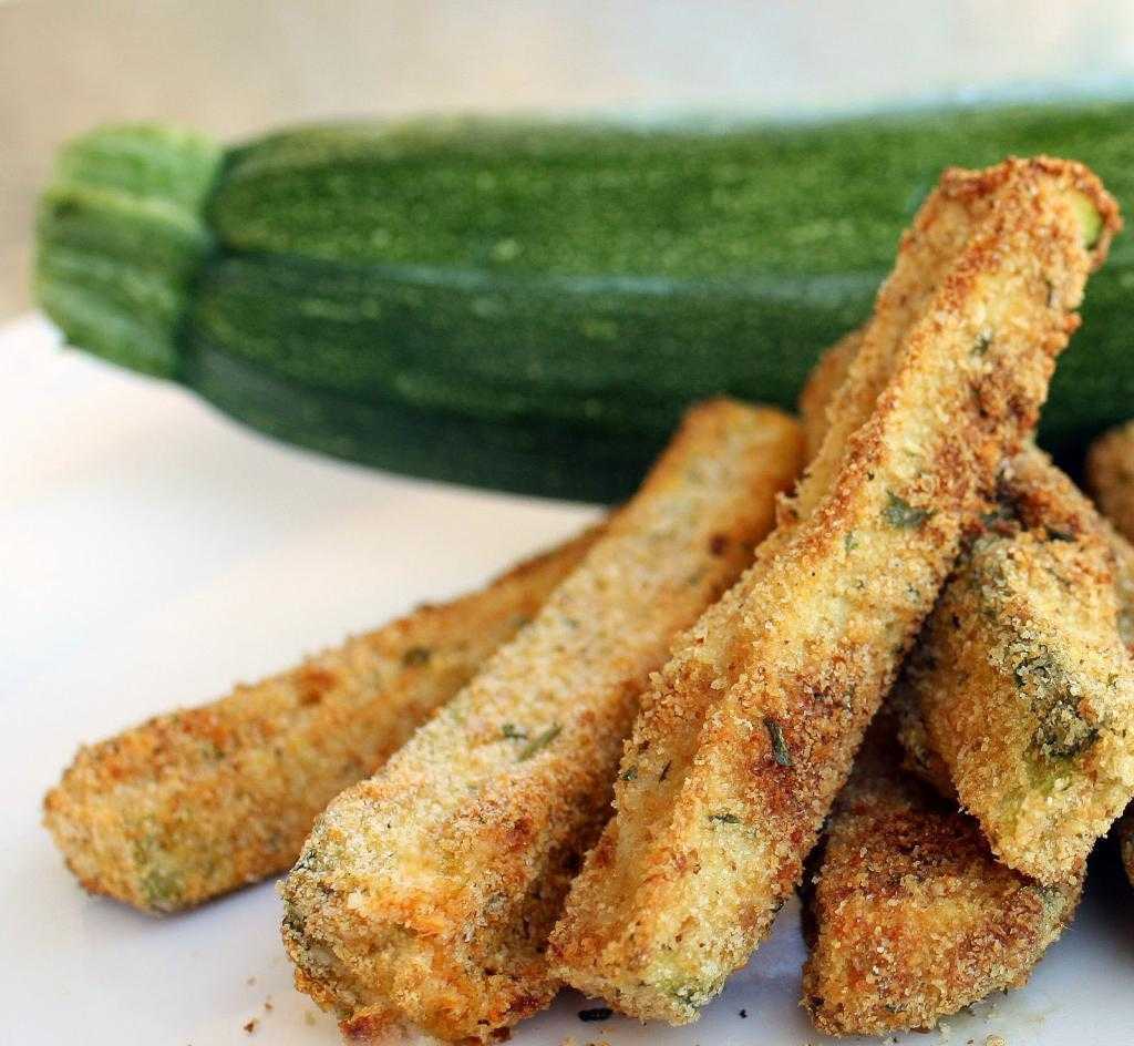 Чтобы сделать такое блюдо, цукини хорошо моют и обсушивают бумажными полотенцами. Далее их нарезают брусками длиной около 8-10 сантиметров. Для получения острого или пряного вкуса кабачки тщательно сдабривают специями, в том числе солью. В таком виде овощи оставляют в стороне и приступают к подготовке панировки.