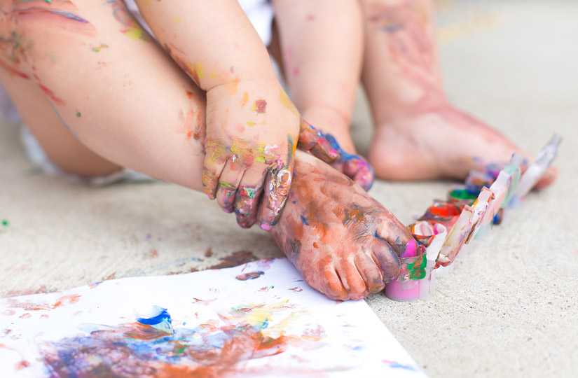 Для работы с красками нужно большое полотно, поскольку маленькие дети не ощущают границ и могут выходить за них;