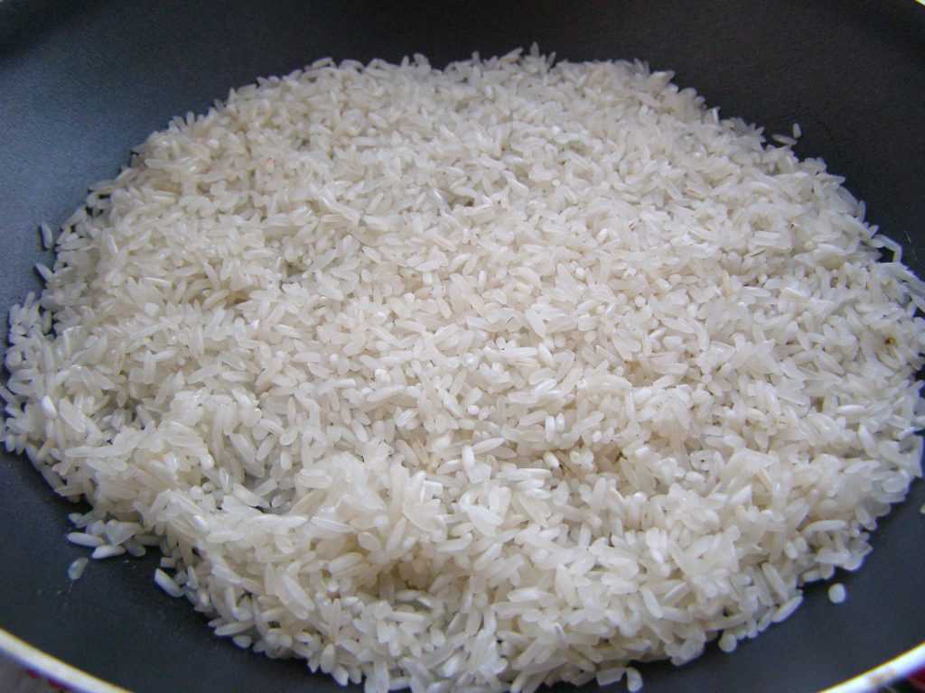 Прокалить на сковороде рис