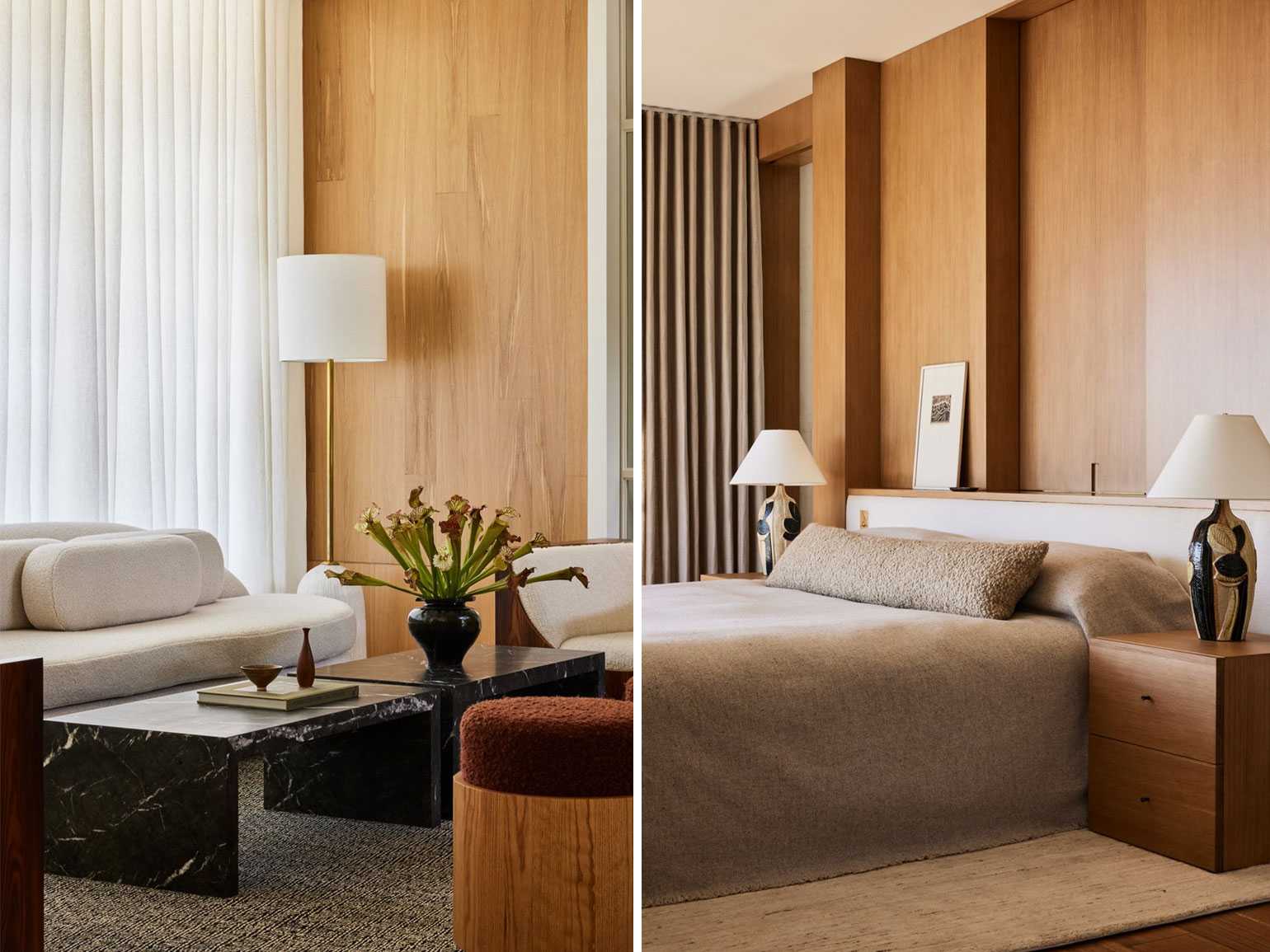 Тихая роскошь: дерево, лён, бархат и камень