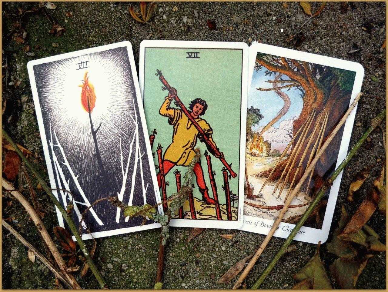 Жезлы вместе с Кубками символизируют чувства, семейные дела, любовные беседы. Негатив (например, ссоры) несут выпавшие вместе 7 и 8 Чаш, 7, 8 и 4 Жезлов. Позитивные карты – предвестники чего-то хорошего.