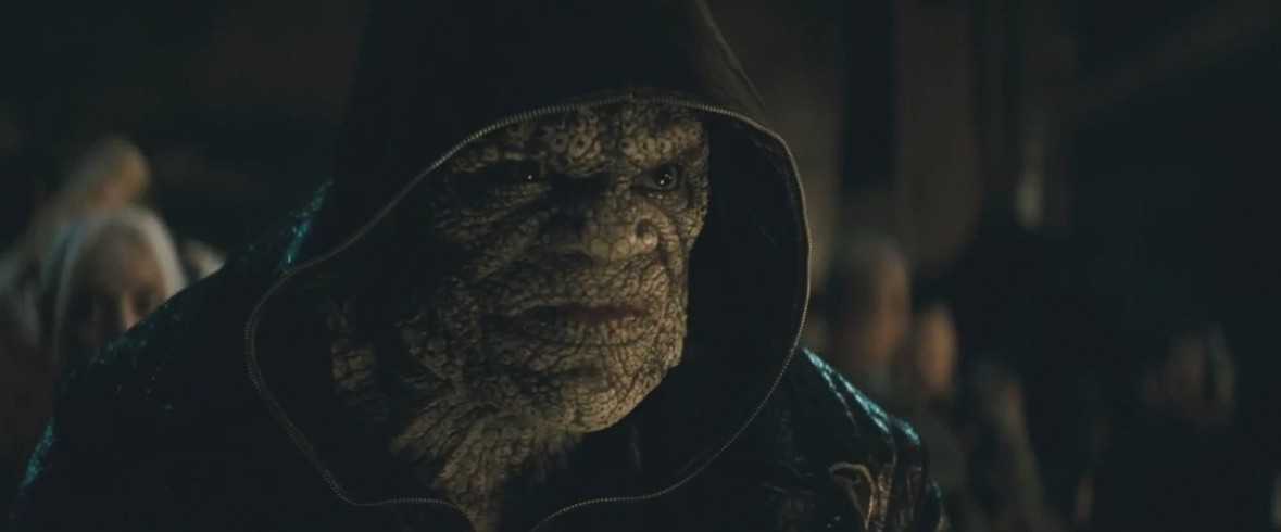 Особые приметы: квадратная челюсть, потрескавшаяся, чешуйчатая кожа и звериный оскал.