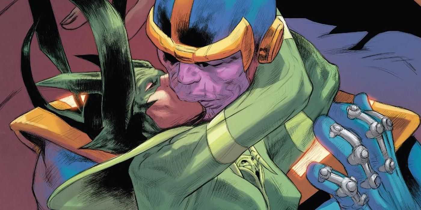 Танос и Хела страстно поцеловались после того, как она потеряла трон Хель, подземного мира Асгарда. Она была вынуждена доказать Таносу свою ценность, убив двух его самых компетентных сотрудников прямо на его глазах. Хаос открыл путь к сердцу Таноса, и не было более подходящего жеста, чтобы сблизить этих двух злодеев.