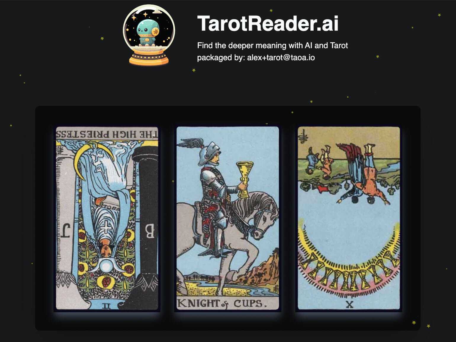 Скриншот: сайт AI Tarot Reader / Skillbox Media