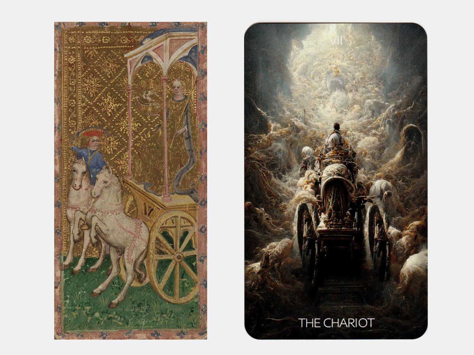 У этих карт «Колесница» разница в 500 лет.