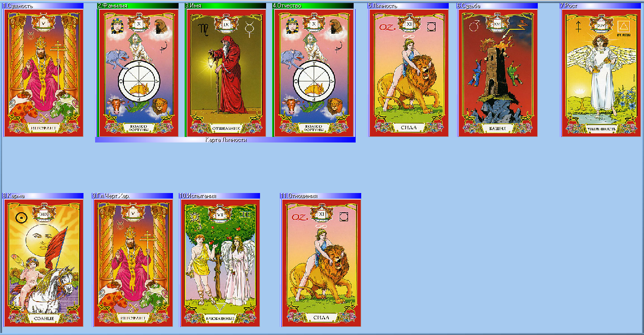 Вторая карта расскажет, что получит от отношений первый партнер. К полученному выше личному аркану добавляется первое:
