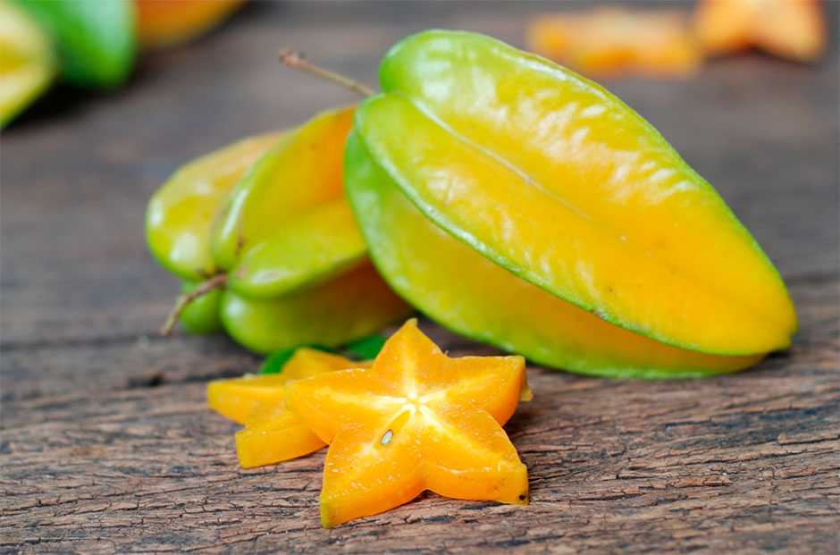 Карамбола весьма низкокалорийная. На 100 граммов приходиться 34 ккал. Фрукт очень водянистый, легко утоляет жажду.