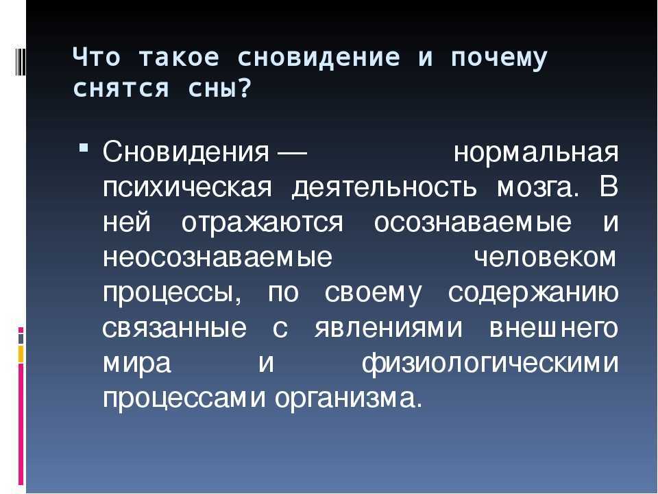 Сны – это образы, сценарии и переживания, которые мы испытываем во время сна. Они могут быть яркими, реалистичными и запоминающимися, а иногда сны могут быть абстрактными и несвязными. Содержание снов может быть разнообразным: от повторения событий дня до фантастических приключений или символических образов.