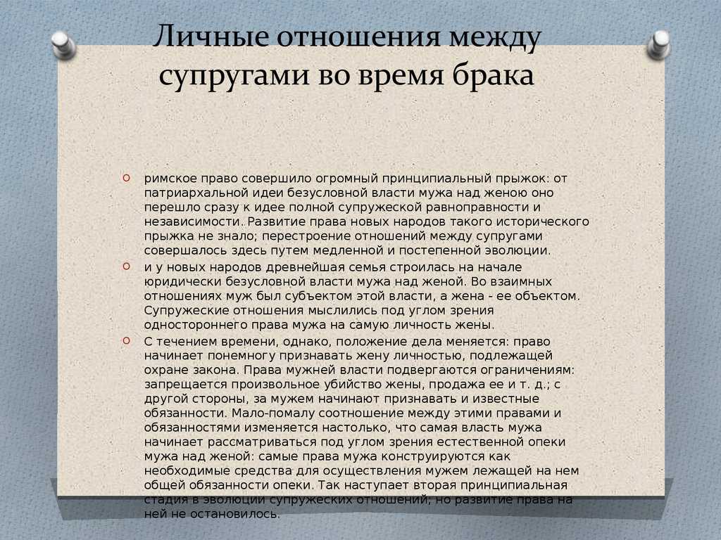 В каждых отношениях есть негласный «договор». В нем могут быть пункты, касающиеся того, какие совместные цели у вас есть, за что каждый из вас отвечает в семье, как принято общаться друг с другом, как проявлять любовь, какая дистанция в отношениях вам приемлема и т.д. Негласные договоренности редко озвучиваются, согласовываются и обсуждаются. Оба супруга развиваются, меняются, и изначальный контракт может не соответствовать сегодняшним потребностям супругов. И тогда договор нужно пересматривать. Задумайтесь о вашем договоре, напишите вдвоем его пункты. Обсудите их. Каждого ли из вас они устраивают? Соответствуют ли требованиям ситуации? Например, изначально у вас был негласный контракт об общем кошельке. Но это соглашение было принято давно, когда денег в семье было мало. Возможно, сейчас у каждого из вас появилась потребность разделить финансы, а вы об этом молчите, и даже не знаете, что ваша половина хочет того же, что и вы. Вспомните притчу про то, как два пожилых супруга на золотой свадьбе обнаружили ошибку всей жизни. Муж подумал: «Всю жизнь, заботясь о жене, я отдавал ей корочку хлеба, которую так люблю, сегодня я наконец-то могу съесть ее сам». То же самое подумала жена о хлебном мякише. После этого они выяснили, что жене всю жизнь нравился мякиш, а мужу — корочка.