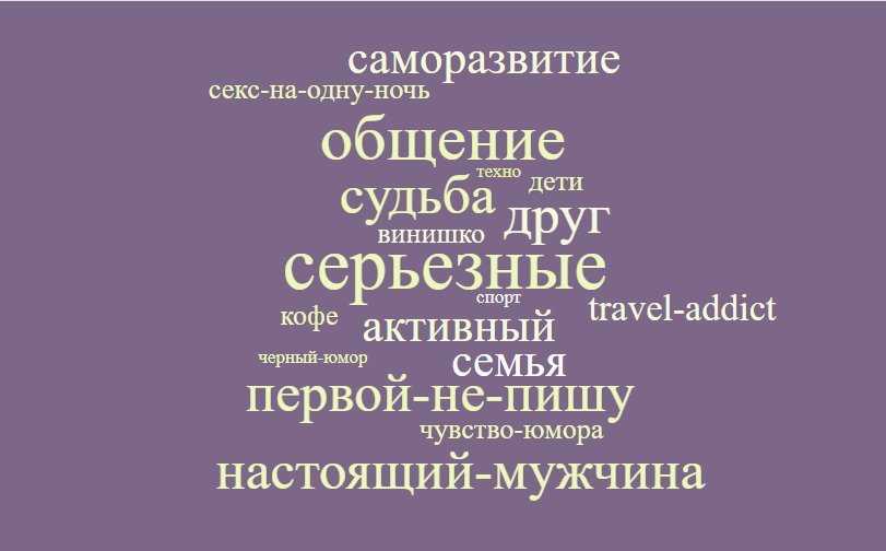Я провел небольшое исследование и на протяжении нескольких дней фиксировал каждый раз, когда некий тег появлялся в описании девушки. Часто у одной девушки мелькало несколько тегов. В итоге у меня получился рецепт абсолютного успеха в тиндере. Проиллюстрируй половину тегов своими фото, а другую половину (ту, которой нет подтверждения) — описанием, и ты в дамках.
