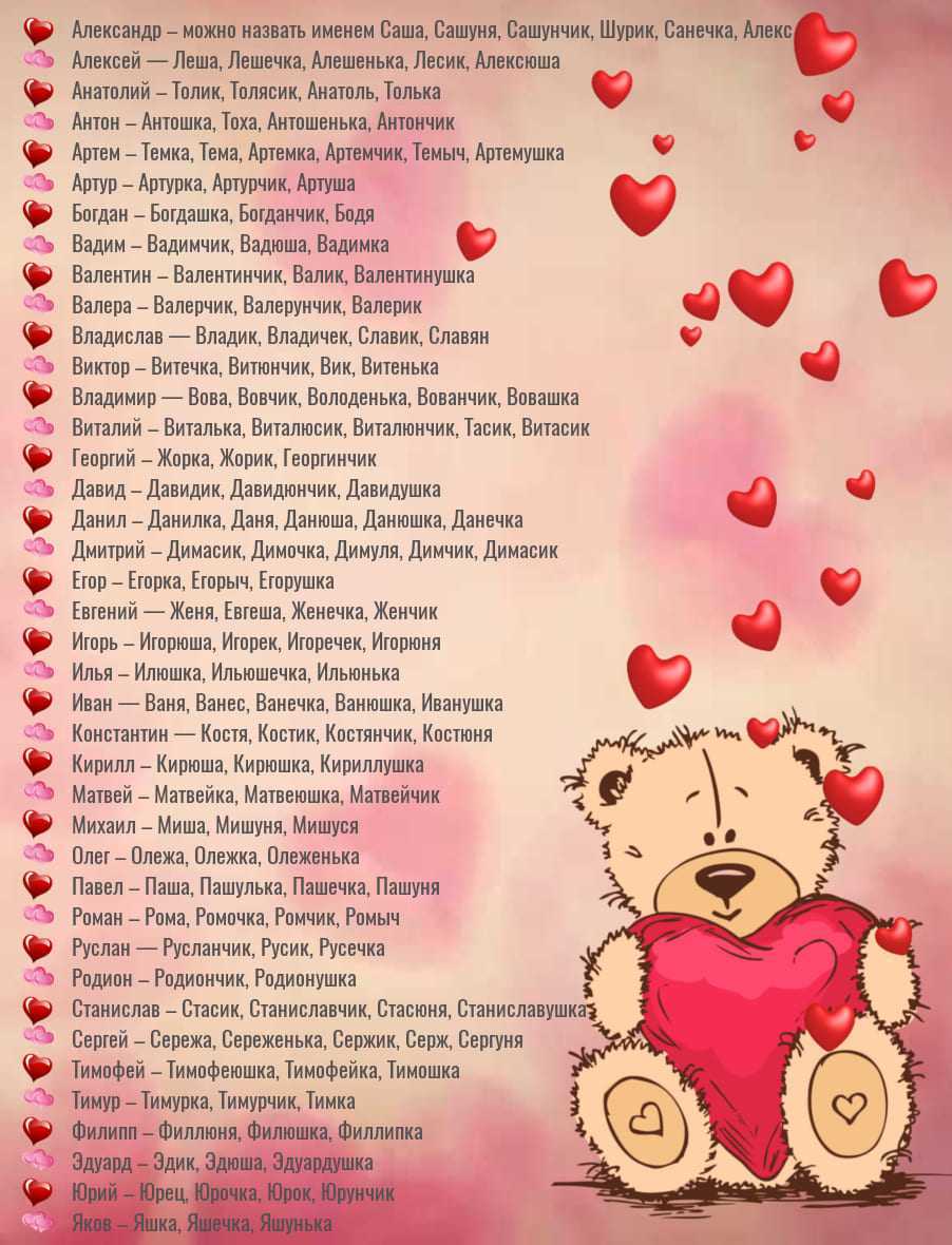Ниже приведём список как можно ласково, но необычно называть парня: