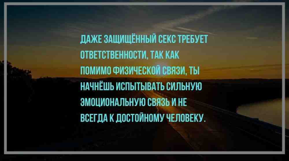 Даже защищённый секс требует ответственности, так как помимо физической связи, ты начнёшь испытывать сильную эмоциональную связь и не всегда к достойному человеку.
